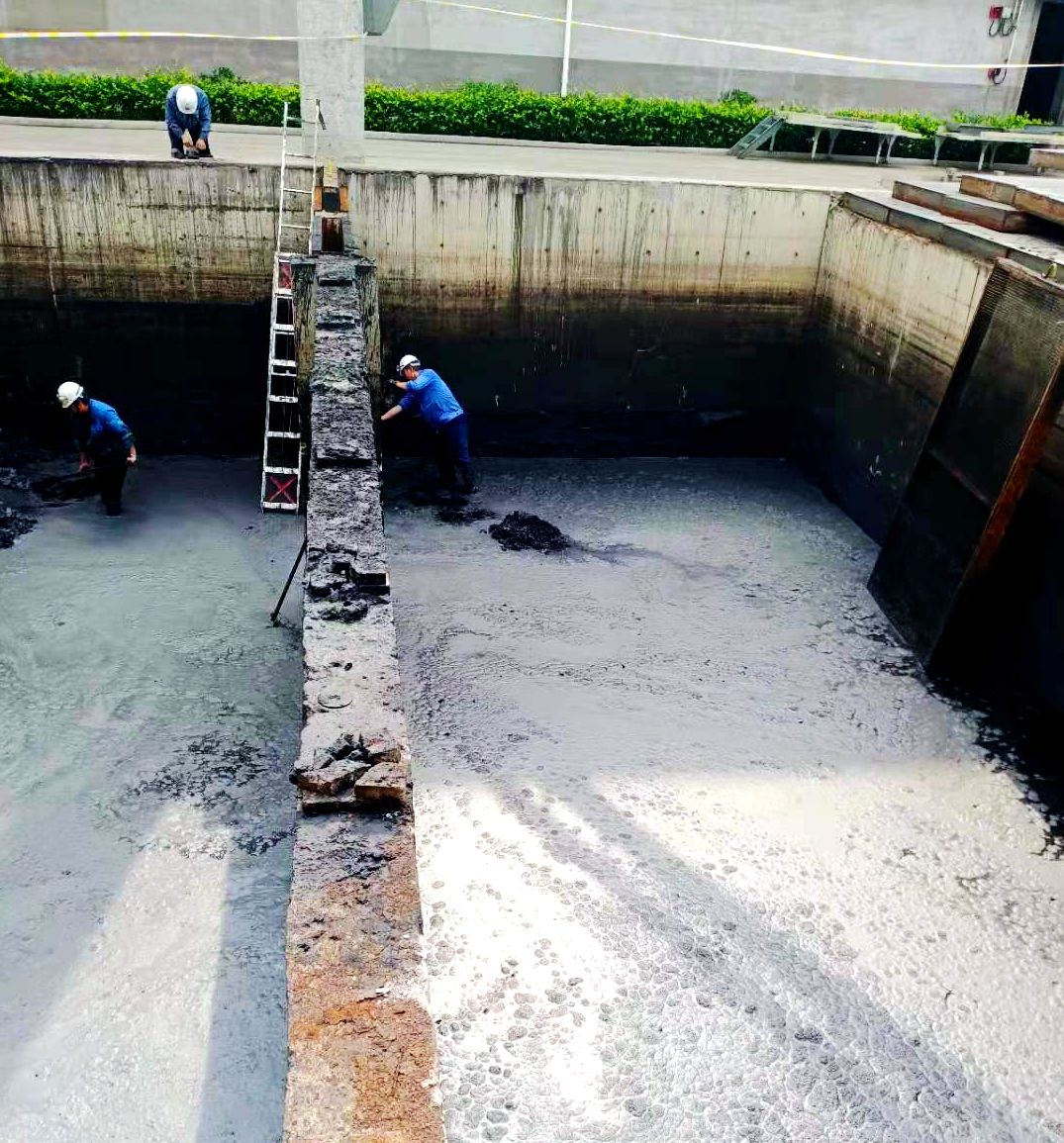 因循環(huán)水系統(tǒng)運行時間較長,造成循環(huán)水池內積存大量淤泥,清淤時只能一桶一桶往外清運,生產(chǎn)一班合理分工,兩人一組,一人在池內清理另一人在池外提運,配合默契,不分你我。